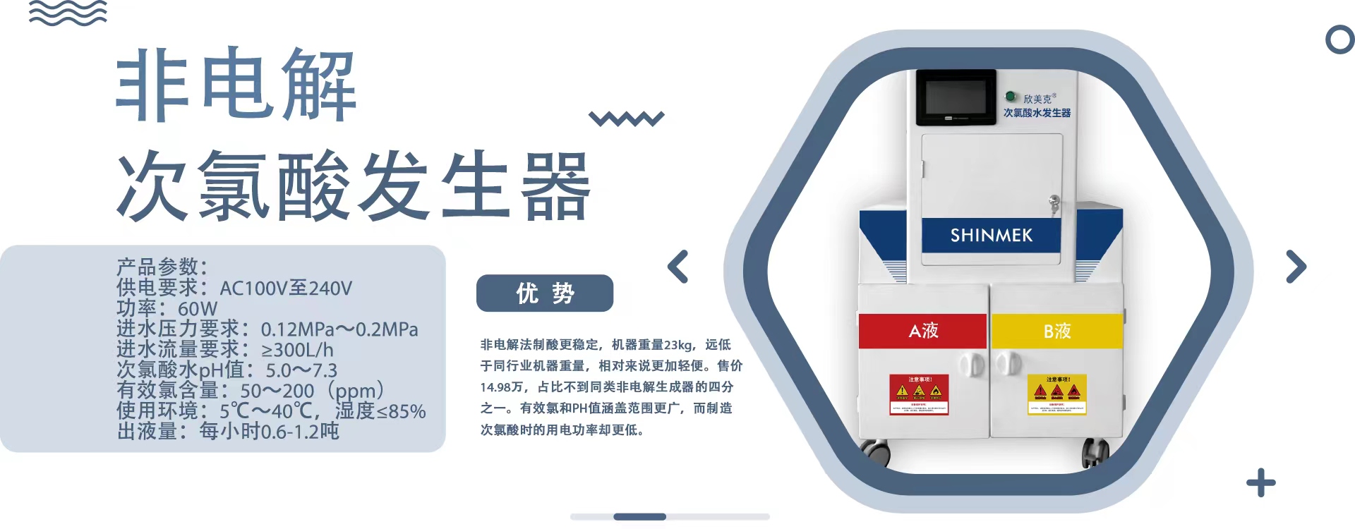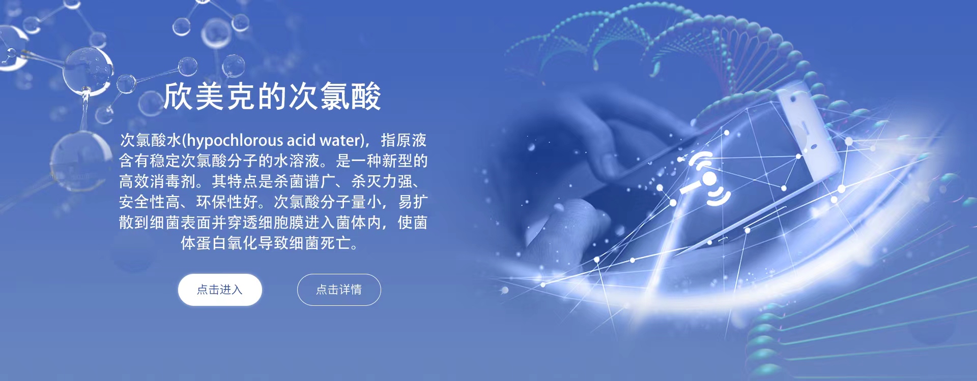 欣美克公司與日本近藤技術(shù)研究所合作,引進(jìn)日本全新專利技術(shù)(非電解微酸性次氯酸水生成工藝),創(chuàng)新研發(fā)一體化消毒殺菌設(shè)備,自主開發(fā)物聯(lián)網(wǎng)智能管理系統(tǒng),為家庭、字校、醫(yī)療衛(wèi)生機(jī)構(gòu)、酒店、食品加工、農(nóng)業(yè)、畜牧業(yè)等行業(yè)提供高效的系統(tǒng)化,智能化的整體消毒方案。